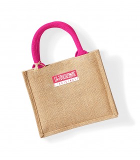 Cabas en jute et anses colorées.